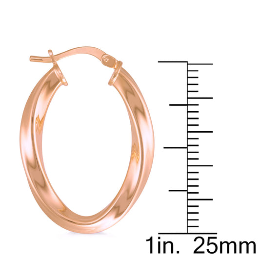 Twisted Oval Rose Gold Hoops