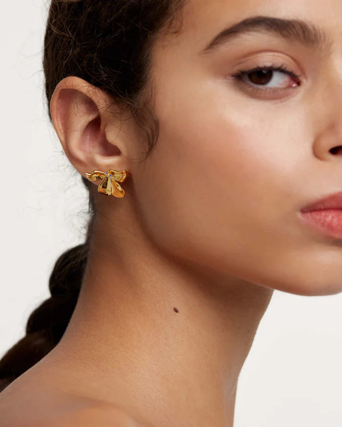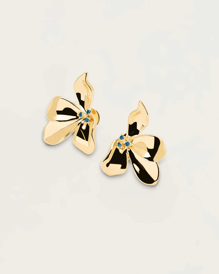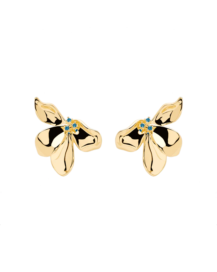 An unfolding flower adorned by dainty blue zirconias is the core of the Fleur earrings that carry a unique retro vibe. Carefully polished and plated in 18k Gold, in a collection inspired by the resilience and delicacy of flora. As a praise for renewal, Blossom is the promise of a new and fresh start.